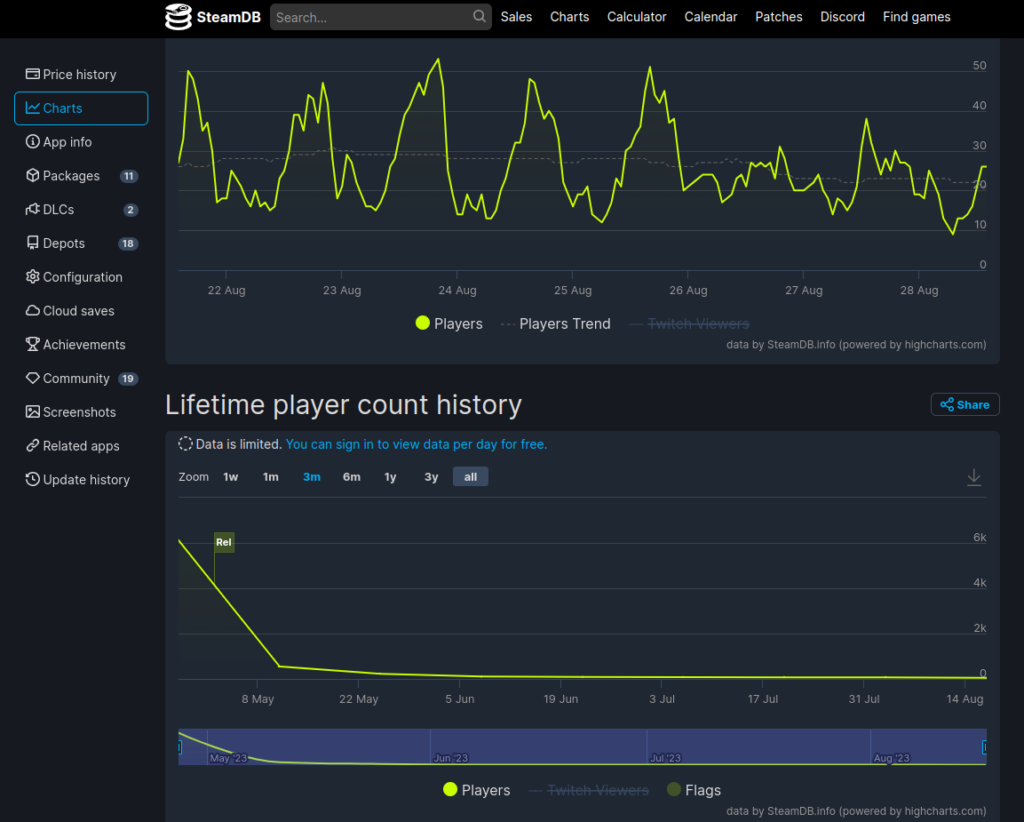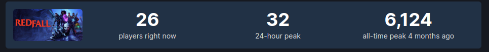 Conforme observado recentemente no Reddit, a contagem de jogadores de Redfall no Steam é basicamente inexistente. Ao analisar os dados do SteamDB, que é um site que rastreia o uso do Steam, Redfall está acumulando apenas cerca de 20 jogadores em toda a plataforma. Neste fim de semana, o jogo atingiu o pico de apenas 38 jogadores no total, o que é absolutamente terrível, para dizer o mínimo.