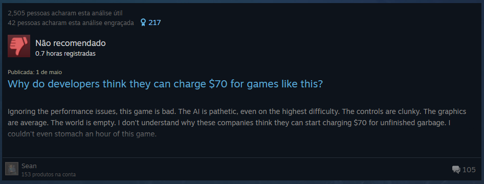Agora, parece que Redfall está recebendo críticas bombadas, já que alguns usuários têm sua própria lista de problemas com o jogo. Redfall tem uma classificação de “Principalmente Negativo” no Steam, já que os jogadores deixam críticas negativas para expressar suas preocupações. Muitos usuários afirmam que a versão para PC de Redfall sofre de problemas de desempenho, com um fã chamando-o de outro candidato à pior portabilidade para PC de 2023.