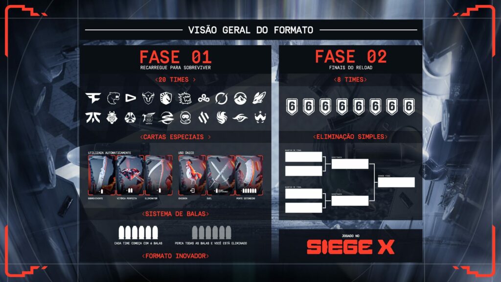 A temporada competitiva de Rainbow Six de 2025 está prestes a começar com o RELOAD, no Rio de Janeiro, e a promessa de muita emoção. O torneio Mundial inédito, cuja premiação total é de 480 mil euros (cerca de R$ 2,8 milhões), acrescenta mecânicas de cartas, desafios, recompensas e desclassificações aos duelos entre as 20 equipes participantes. Tudo isso será disputado pela primeira vez em Siege X, a recém-anunciada atualização de Rainbow Six Siege, atualmente em fase Beta.