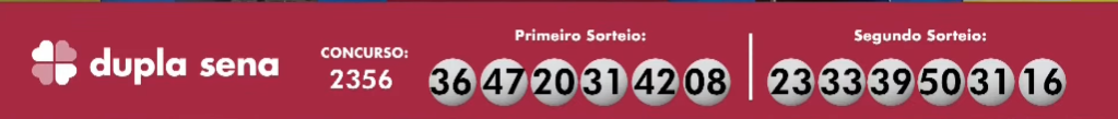 Nesta terça, a Caixa sorteou o concurso 2356 da loteria Dupla Sena. E mais uma vez, o evento aconteceu com transmissão ao vivo direto do Espaço da Sorte, em São Paulo. Confira abaixo:
