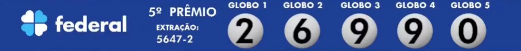 Neste sábado (19), a Caixa Econômica Federal sorteou o concurso de número 05647-2 da Loteria Federal. A transmissão do sorteio aconteceu ao vivo à partir das 19h e o resultado pode ser conferido abaixo: