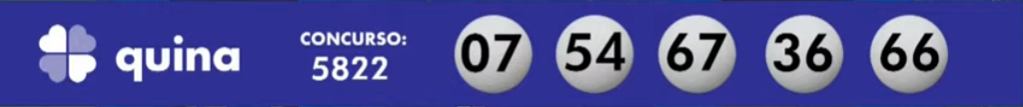 Nesta quarta (6), a Caixa sorteou o concurso 5822 da loteria da QUINA. E mais uma vez, o sorteio aconteceu direto do Espaço da Sorte, em São Paulo. Confira o resultado abaixo: