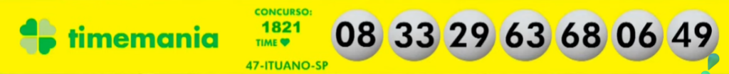 Resultado da TIMEMANIA de hoje, sábado, 13/08, concurso 1821