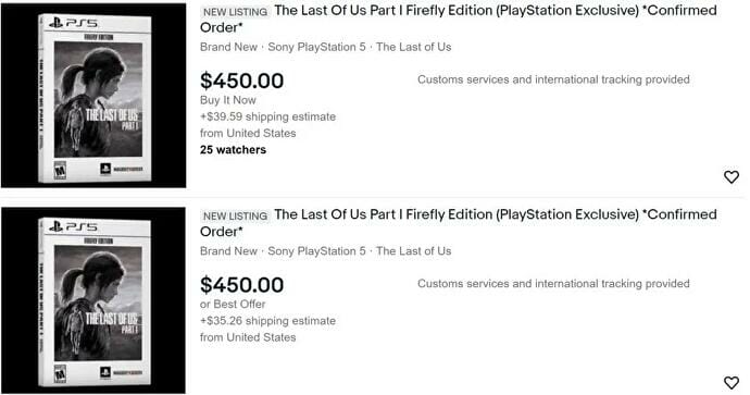 The Last of Us ganhará uma nova edição chamada Firefly Edition, para PS5, no dia 2 de setembro. No site exclusivo do PS Direct, nos EUA, o título esgotou em questão de horas, apesar de custar mais de R$ 500 reais. Agora, já começaram a surgir revendedores no eBay pedindo mais que o dobro do preço do jogo, chegando ao valor de R$ 2.300 reais.