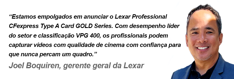 Seguindo sua promessa feita para o Brasil, a Lexar anunciou mais um produto de sua linha de cartões de memória flash que chega junto com os principais mercados globais. Desta vez, o mercado BR recebe a nova série GOLD de cartões Lexa Professional CFexpress Tipo A e o leitor de cartões Lexar Professional CFexpress Tipo A/SD.