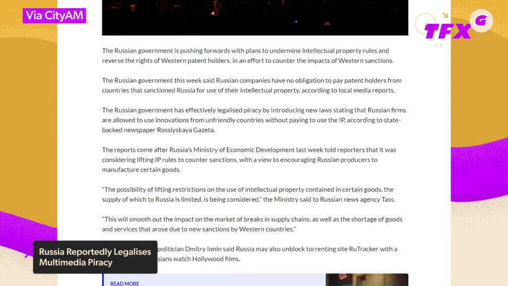 Na prática, a pirataria está liberada contra produtos de todas as empresas que praticaram sanções à Rússia pro conta da guerra contra a Ucrânia.