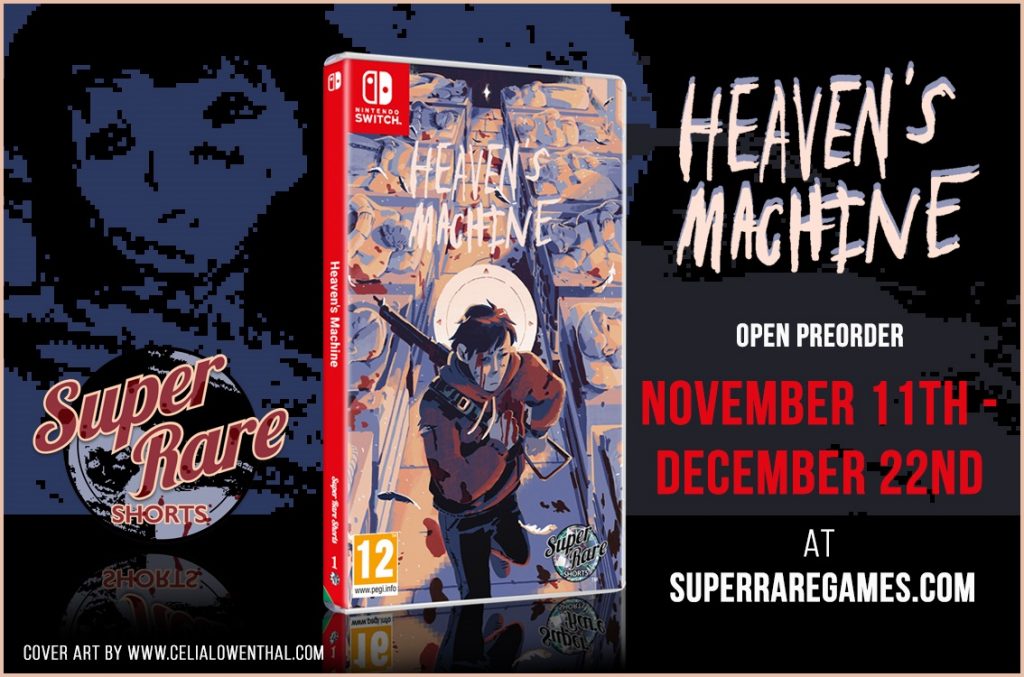 Heaven’s Machine representa o primeiro da série Super Rare Shorts. Esses jogos indie físicos estão sendo totalmente financiados pela Super Rare Games, e nunca serão oferecidos em lojas digitais para consoles. Os desenvolvedores retêm o IP (Propriedade Intelectual, no entanto, e cabe a eles se desejam lançar sequências, spin-offs ou jogos semelhantes por meio digital.