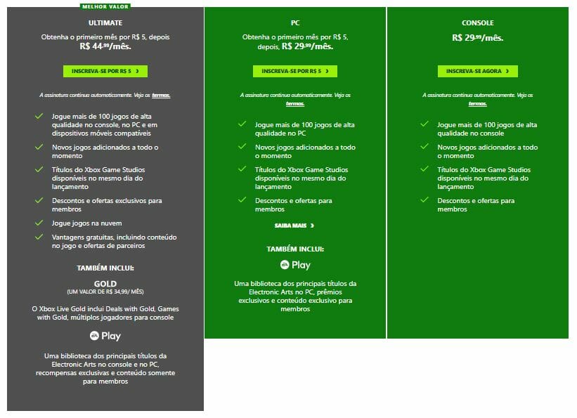 Como deu para ver acima, os valores do PC e Console Xbox, são praticamente os mesmos. A diferença fica para o EA Play.