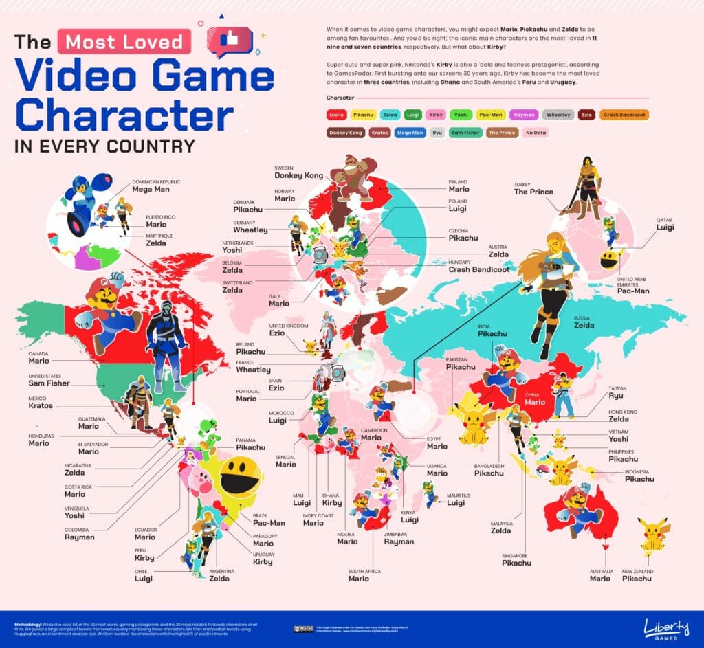 Com o quão longe a indústria de jogos vai, existem inúmeros personagens icônicos, e um estudo recente revelou os personagens de videogames mais amados e odiados de todos os países, o que inclui alguns pilares da Nintendo. Existem milhares de personagens de jogos reconhecíveis, como Link, Mario e Pikachu da big N, Pac-Man da Namco e muitos mais, mas este novo estudo pode lançar uma luz sobre onde os personagens estão em cada região do mundo.