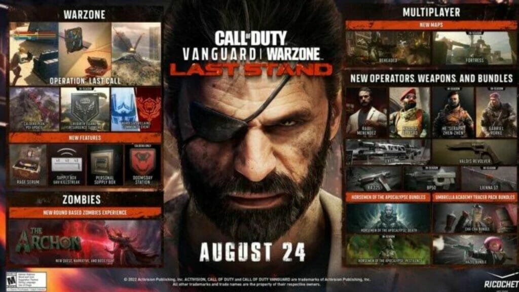 A Activision datou e detalhou a temporada final de Call of Duty Vanguard e Warzone, que será lançada no dia 24 de agosto. “Last Stand está trazendo grandes atualizações para todas as três experiências de jogos”, falou a editora.