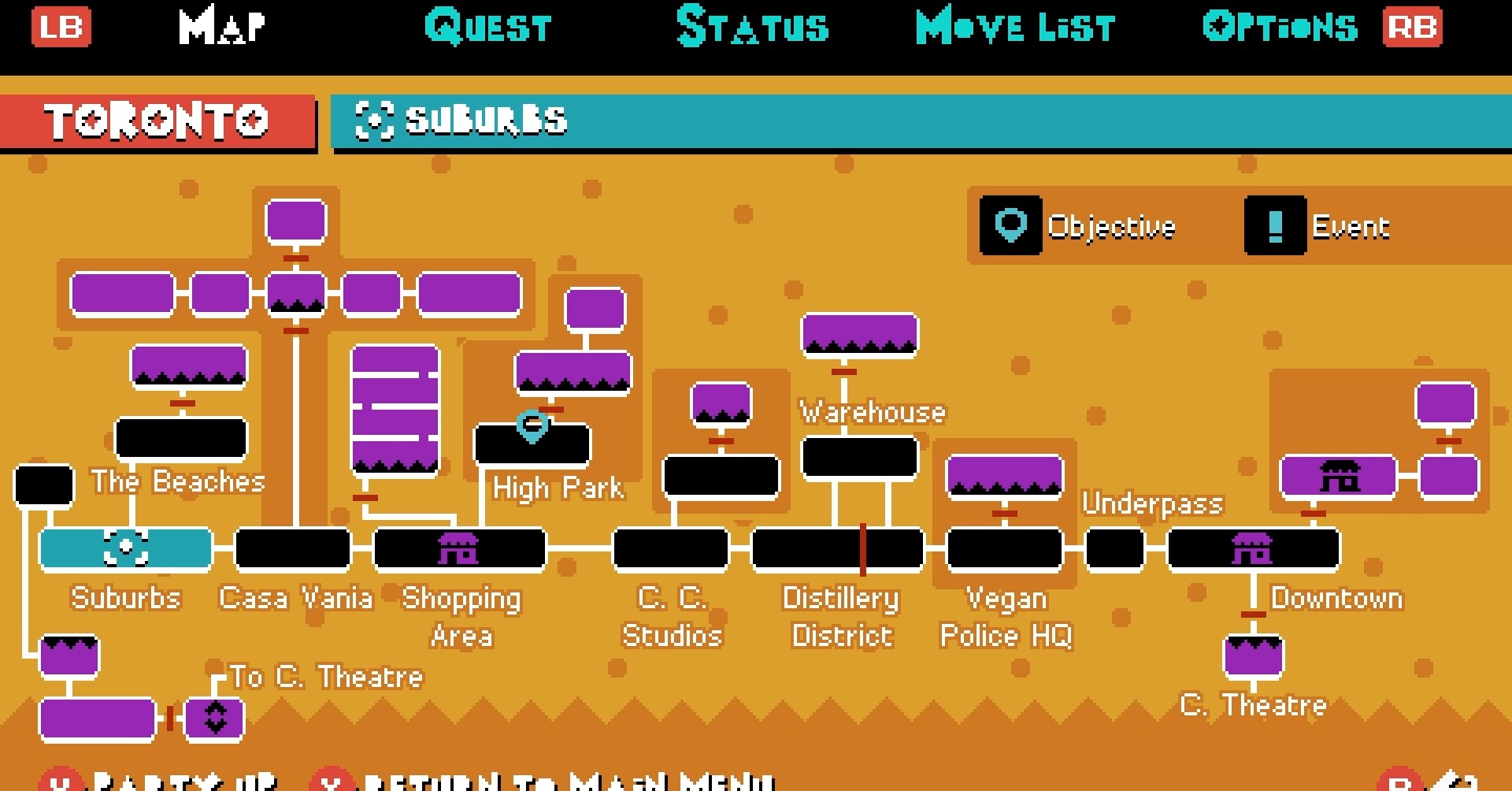“Este jogo acontece em um mundo realmente grande de áreas interconectadas, que você explorará no seu próprio ritmo”, disse ele. O mapa, que é totalmente desbloqueado quando os jogadores começam o jogo, é inspirado no clássico NES Beat-‘-up River City Ransomque quebrou o chão com uma abordagem de “mundo aberto” da encenação. Enquanto as missões em Scott Pilgrim EX Terá progressão linear, os jogadores poderão pular e chegar direto aos negócios, pois todos os seus movimentos e combos estarão disponíveis desde o início também.