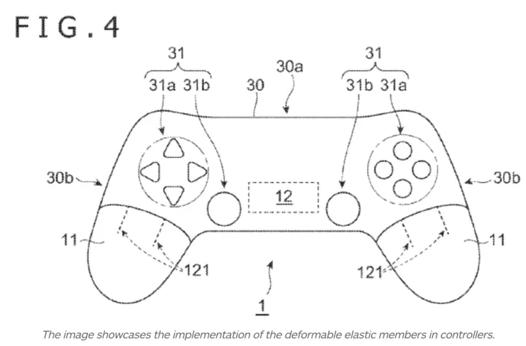 A patente (via exputer) descreve um material semelhante a gel que possui propriedades elásticas, permitindo que um controlador se deforme de alguma forma se for implementado. “A forma ou dureza das porções dos membros elásticos 11 (apertos) muda em resposta a um processo realizado por [um jogo]”, diz a patente.