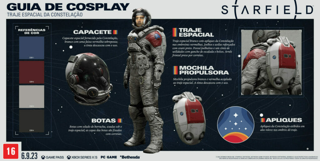 O jogo é um vasto mundo aberto em que os fãs podem ser quem quiserem ser e contar sua própria história, e agora é possível até levar essas narrativas ao mundo real com os guias oficiais de cosplay. Vistam o traje espacial da Constelação ou então representem a União das Colônias ou a Confederação Freestar. Assumam o papel da líder da Constelação, Sarah Morgan, ou façam cosplay do ex-patrulheiro Freestar, Sam Coe, e deem vida a essas histórias.