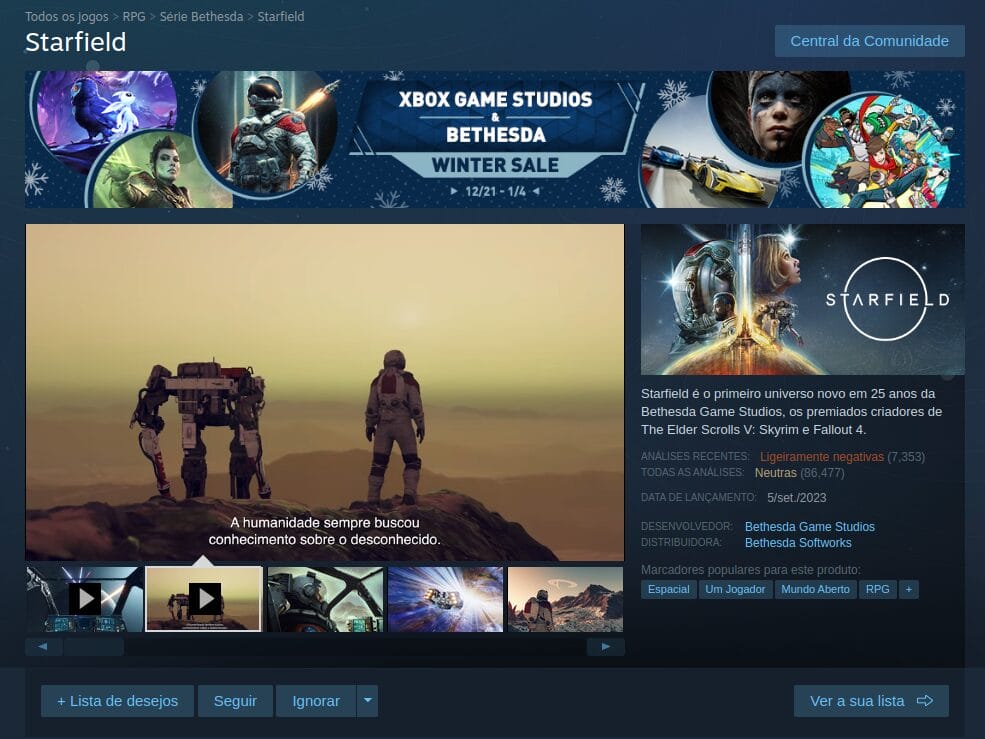 Starfield não tem mais classificação mista no Steam, pois suas análises recentes deixadas pelos jogadores são em sua maioria negativas, onde apenas 37% estão satisfeitos com o jogo. Embora Starfield tenha tido um lançamento bem-sucedido em setembro de 2023, o último título da Bethesda lentamente caiu em popularidade.