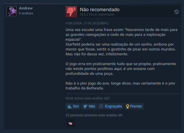 Como resultado, Starfield atualmente possui uma classificação de 37% no Steam, coletada a partir de avaliações de usuários feitas por seus jogadores nos últimos 30 dias. Embora um roteiro ambicioso para Starfield tenha sido compartilhado pela Bethesda, ele pouco fez para melhorar a opinião pública atual sobre o jogo.