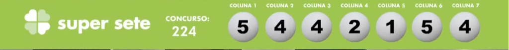 Nesta sexta (21), a Caixa sorteou o concurso 224 da loteria da Super Sete. E mais uma vez, a rodada de sorteios da noite aconteceu à partir das 20h, direto do Espaço da Sorte, na Avenida Paulista, em São Paulo. Confira os resultados: