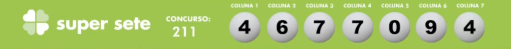 O Super Sete é a loteria de prognósticos numéricos cujo volante contém 7 colunas com 10 números (de 0 a 9) em cada uma, de forma que o apostador deverá escolher um número por coluna. Caso opte por fazer apostas múltiplas, poderá escolher até mais 14 números (totalizando 21 números no máximo), sendo no mínimo 1 e no máximo 2 números por coluna com 8 a 14 números marcados e no mínimo 2 e no máximo 3 números por coluna com 15 a 21 números marcados. São sorteados sete números (um por coluna). Você pode deixar, ainda, que o sistema escolha os números para você (Surpresinha) e/ou continuar com o seu jogo por 3, 6, 9 ou 12 concursos consecutivos (Teimosinha).