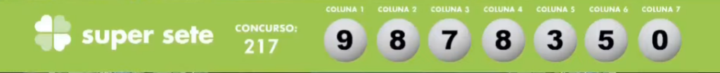 Nesta quarta (9), a Caixa sorteou o concurso de número 217 da loteria do Super Sete. O evento aconteceu ao vivo, direto do Espaço da Sorte, na Avenida Paulista, em São Paulo. Confira abaixo:
