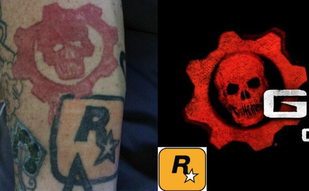 Além da tatuagem que ficou muito estranha da Rockstar, pelo visto todas as outras tiveram um destino semelhante: o lixo. O que já era uma péssima ideia de colocar tantos logos em um único lugar, se tornou pior com estes desenhos tortos, cores mais do que estranhas e parecendo que foram queimadas na pele. Um inferno total!