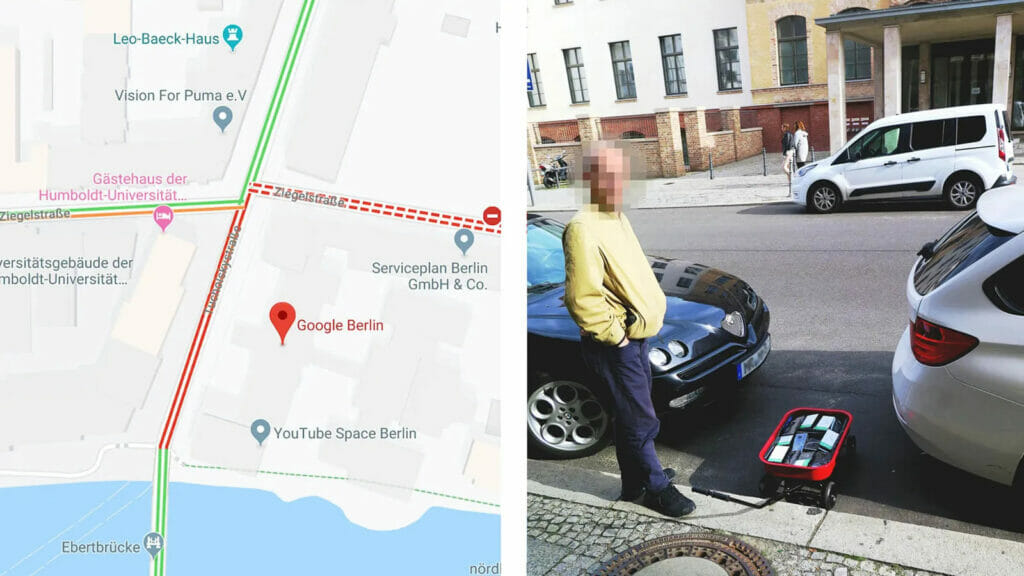 O plano era simples. Ao longo de um dia, Weckert andava para cima e para baixo em uma determinada rua, quase sempre aleatoriamente, rebocando atrás de si seu carrinho cheio de smartphones. O efeito não foi instantâneo; o Google Maps levou cerca de uma hora para alcançá-lo. Mas, eventualmente, inevitavelmente, Weckert disse que seu vagão criaria uma longa linha vermelha no aplicativo, indicando que o tráfego havia diminuído muito – mesmo que não houvesse nenhum tráfego.