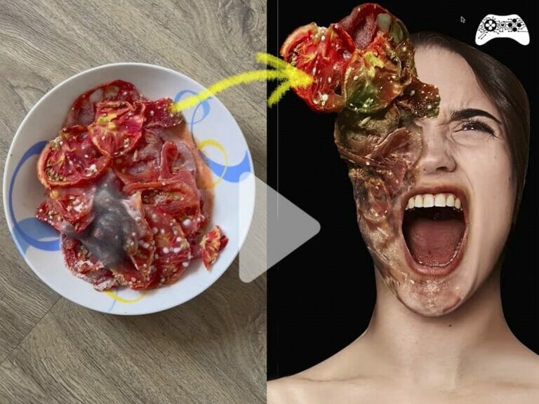 A ideia é bem simples, como pode ser conferida no vídeo. Ele pegou o rosto de uma pessoa dando um grito, algumas imagens de tomate, desfigurou (estigando) a fruta (sim, tomate é fruta), e dando ajustes de coloração e aplicações artisticas para ficar da maneira como ele queria. O resultado, como pode ser visto, é mais do que fantástico!