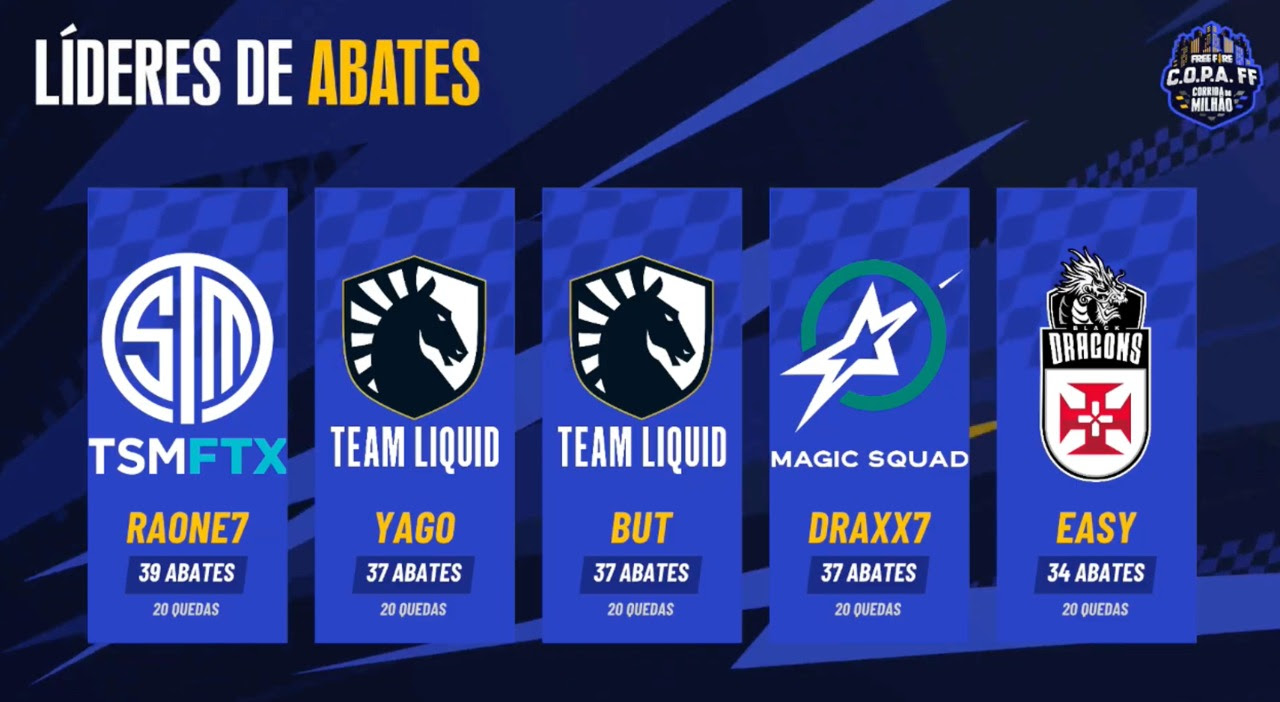 Dois jogadores foram eleitos MVPs (Most Valuable Player) durante a C.O.P.A. FF: o MVP Pro foi o Raone, da equipe TSM, com 39 abates em 20 quedas.
