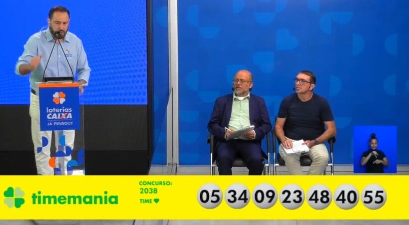 Neste sábado (6), a Caixa sorteou o concurso 2038 da Timemania. E mais uma vez, o evento aconteceu com transmissão ao vivo à partir das 20h, direto do Espaço da Sorte, na Avenida Paulista, em São Paulo. Confira abaixo: