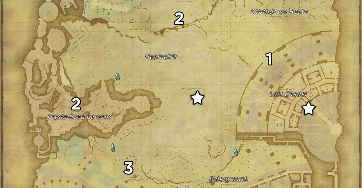 Abaixo, você pode ver um mapa dos pontos de pesquisa que você pode encontrar brilhando ao redor do mapa Ffxivé o crescente oculto.
