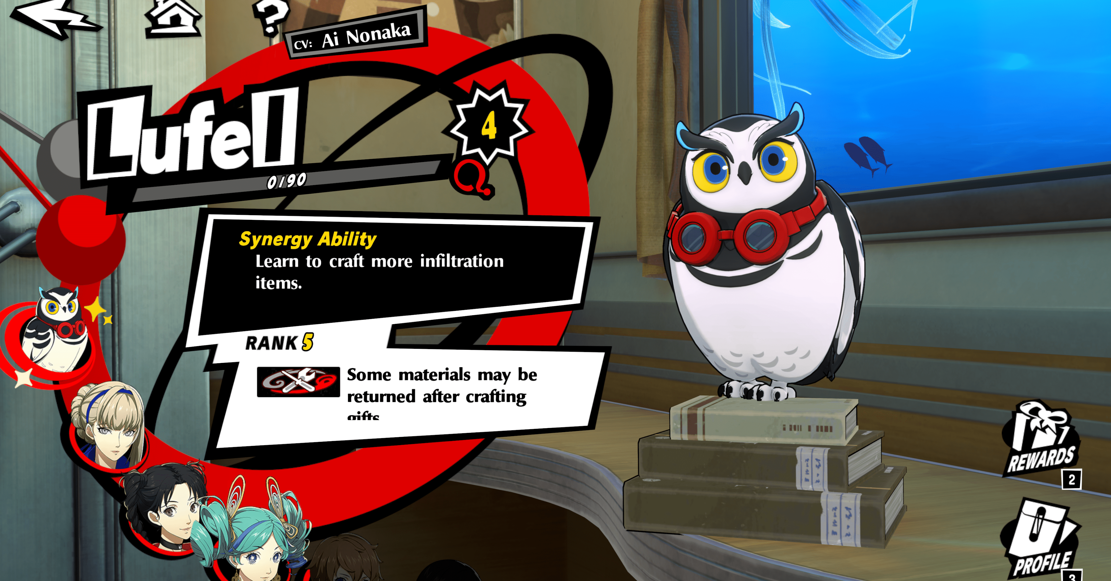 O vínculo de sinergia de Lufel é desbloqueado através da progressão da história. Especificamente, depois de concluir a missão “Despertar do desejo”. O aumento do título de Lufel fornece atualizações de infiltração e criação, como fabricar mais ferramentas com menos materiais.