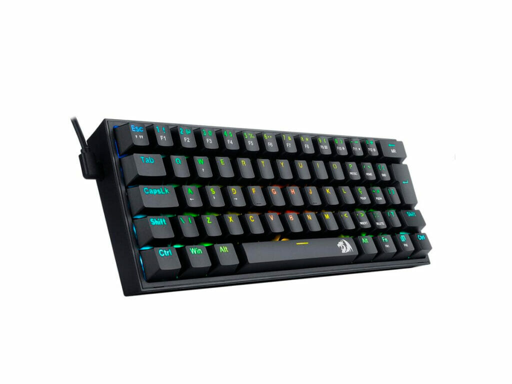 Redragon Fizz – Compacto e leve, o Redragon Fizz vai te ajudar caso você não tenha muito espaço no seu setup. Contando com seu Switch Brown e Hotswap que não fazem muito barulho na hora da digitação, sendo o tamanho 60%, padrão ABNT 2, todo feito em plástico ABS, fios de 1,80cm e teclas ABS Doubleshot.