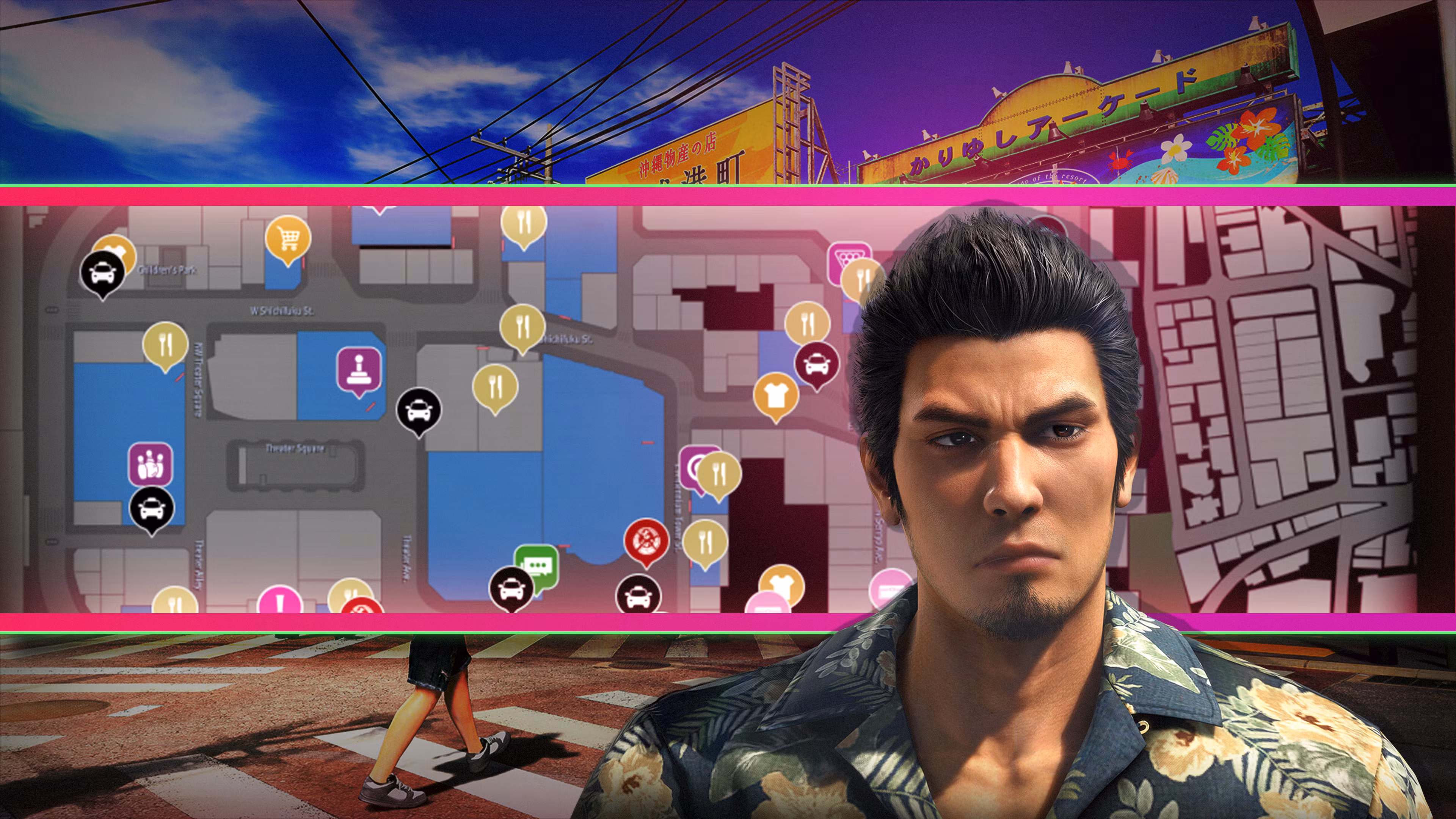 Mapa interativo de Yakuza Kiwami 3 no centro de Ryukyu