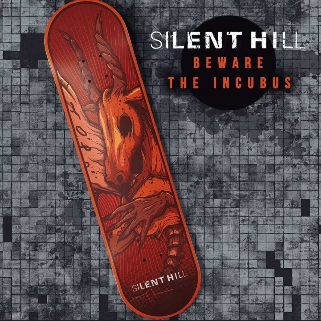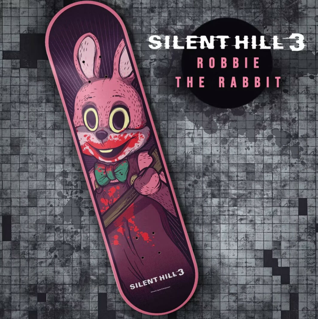 Silent Hill também está recebendo uma série de skates baseados na franquia. Quatro designs foram revelados, todos lançados em 2023. Silent Hill 1, 2, 3 e The Room estão recebendo um lançamento, cada um baseado no Incubus, Pyramid Head, Robbie the Rabbit e Eileen, respectivamente.