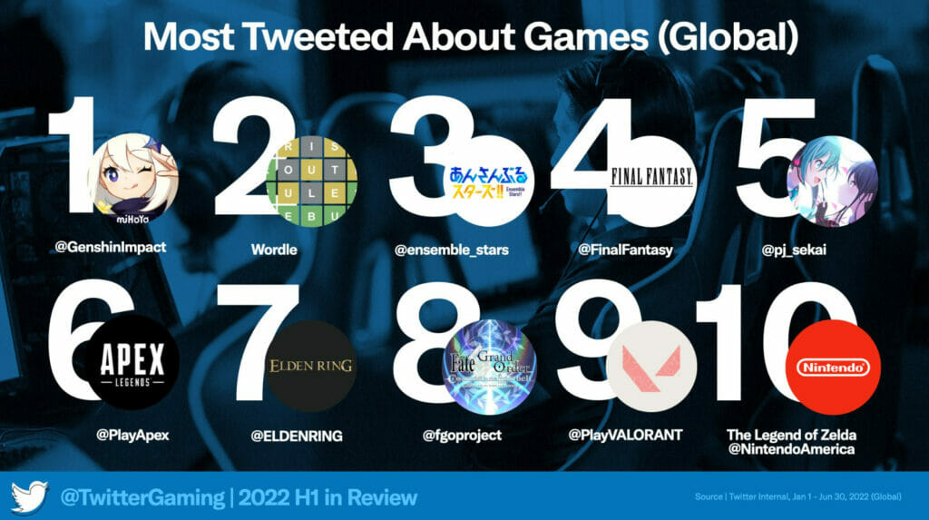 Agora, o Twitter está revelando quais jogos foram mais comentados no primeiro semestre de 2022. Normalmente, o Twitter revela estatísticas sobre quais jogos são os mais twittados de vez em quando, com os dados mais recentes mostrando que Genshin Impact e Wordle estavam no topo da lista no primeiro trimestre de 2022.