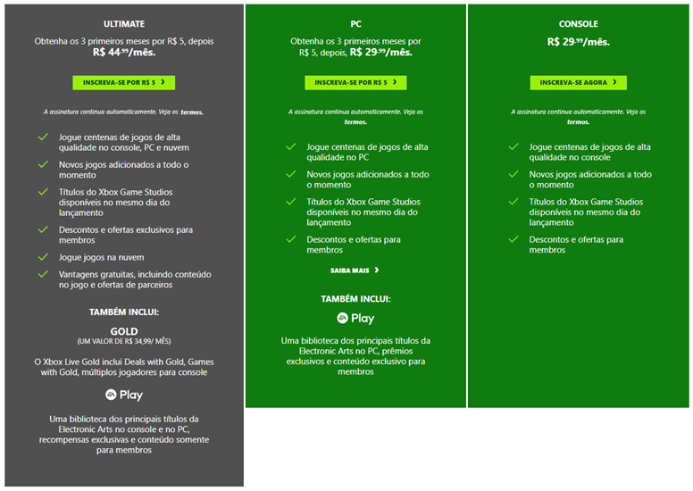 De maneira geral, o Xbox Game Pass é uma assinatura que vale a pena possuir. Atualmente (matéria feita em 21 de julho de 2022), os três primeiros meses estão por R$ 5,00. Após isso, a assinatura mais cara é de R$ 44,99, portanto ainda mais barata do que sua concorrente, o PS Plus Deluxe: R$ 59,90 mensais, R$ 159,90 trimestrais ou R$ 389,90 anuais.