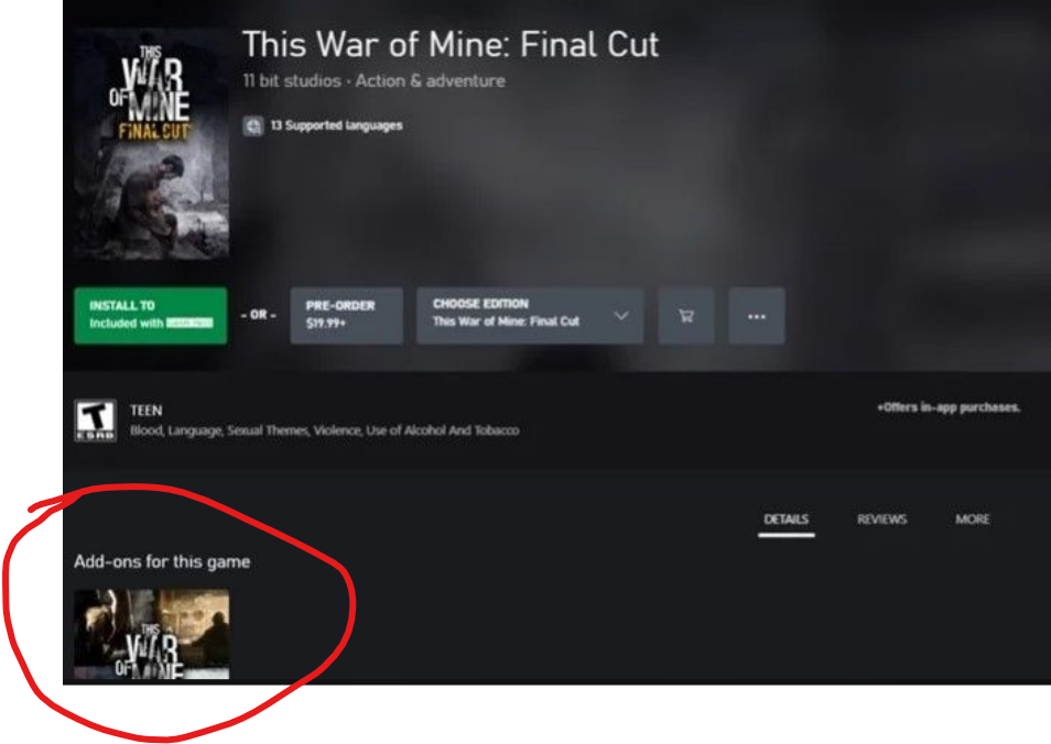 De acordo com a Microsoft Store, This War of Mine: Final Cut será lançado em 10 de maio como parte do Game Pass. This War of Mine foi lançado originalmente em 2014 e no Xbox One em 2016, mas o Final Cut é uma versão remasterizada para Xbox Series X (e outras plataformas). Depois que as imagens desse vazamento surgiram online, vários usuários relataram vê-lo no aplicativo Xbox Game Pass, legitimando ainda mais isso como um vazamento e não um erro técnico.