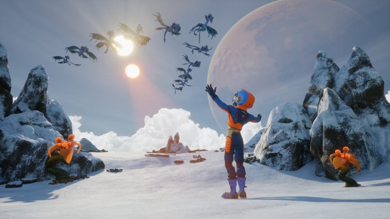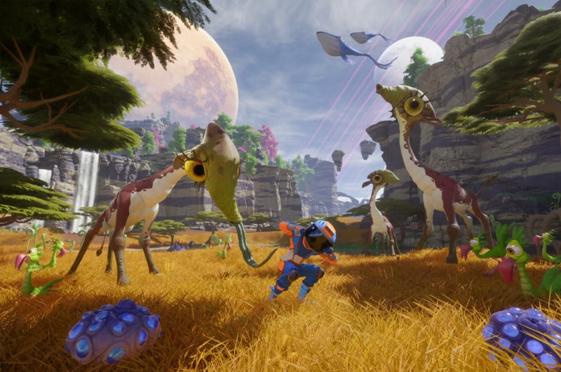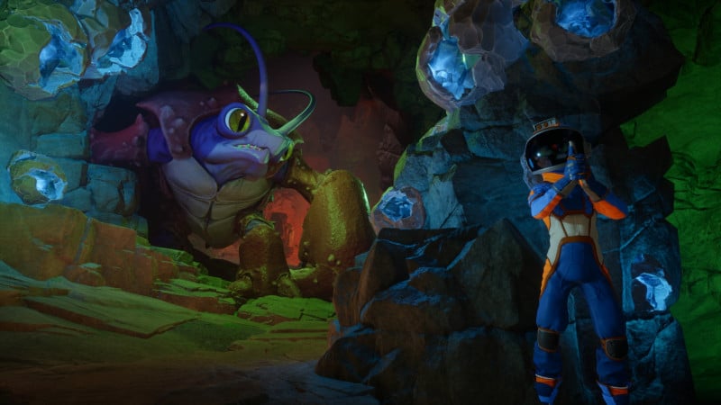 Entrando no traje espacial de um infeliz funcionário corporativo encarregado de explorar planetas em cantos remotos da galáxia, você imediatamente começa a digitalizar todos os objetos, criaturas e plantas. Adorei ativar minha viseira e ver uma tonelada de itens anteriormente não escanados ao meu redor. Enquanto você explora, você encontra várias bestas diferentes, desde guaxinins fofas, parecidas com pássaros em chamas que não hesitarão em vomitar lava em você.
