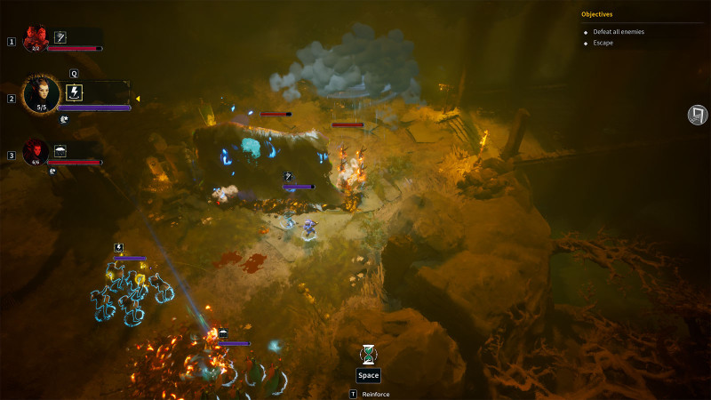 O combate em Wartorn é fortemente inspirado nos jogos clássicos de estratégia em tempo real, mas Hellquist diz que a equipe está tentando elevar especificamente suas partes favoritas do gênero e acelerar a jogabilidade. É importante ressaltar que eles também querem deixar os jogadores desacelerarem quando precisam. Pressionar a barra de espaço a qualquer momento diminuirá a luta de um rastreamento para ajudar na tomada de decisões e estratégia. “Sinto que os jogos do Starcraft e coisas assim – eles são incríveis, mas ficam muito, muito impressionantes, especialmente para mim”, diz Hellquist. “Uma das coisas que estávamos tentando projetar aqui é […] combates mais digestíveis, onde você tem apenas um punhado de esquadrões. ” A idéia é que os encontros de combate pareçam um jogo clássico do RTS, mas com uma jogabilidade mais focada.