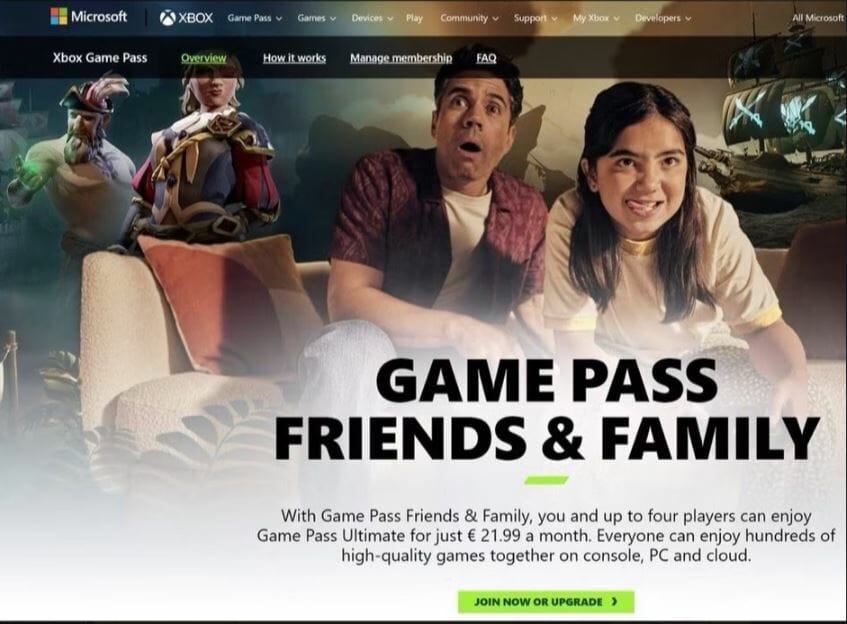 Em termos de preços, o plano custa mais do que a assinatura Ultimate individual. Na Irlanda, o preço do Game Pass Ultimate é de € 12,99 ou cerca de US $ 15, enquanto o plano Friends and Family quase dobra esse custo para € 21,99, equivalente a cerca de US $ 25.